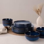 Richmount Starlight Tableware, 18-Piece Plate Set, Service for 6 People, Ribbed Structured Tableware, Microwave and Dishwasher Safe, Anti-Scratch, Reactive Glaze, Blue