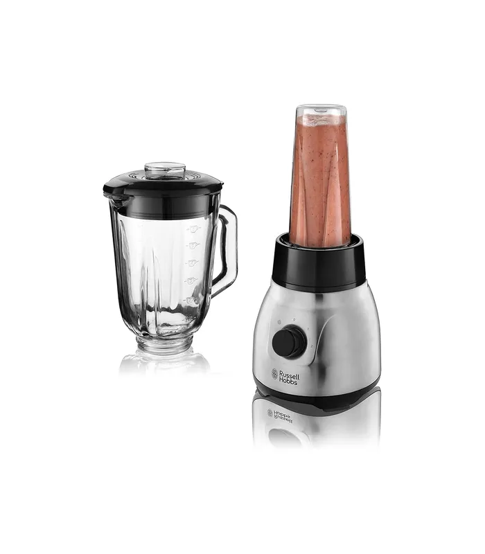 - Package Contents: 1 x stainless steel electric blender with 1 x glass mixing cup (capacity 1.5 l) and 1 x plastic cup (capacity 600 ml) including lid with drinking opening, 1 x 4 stainless steel blades with four blades for smoothies and other mixes