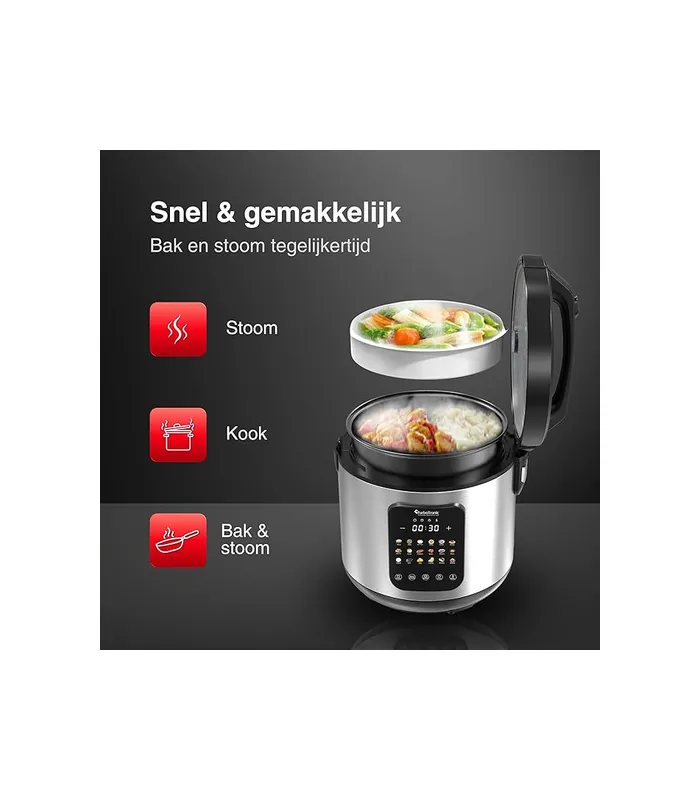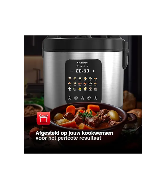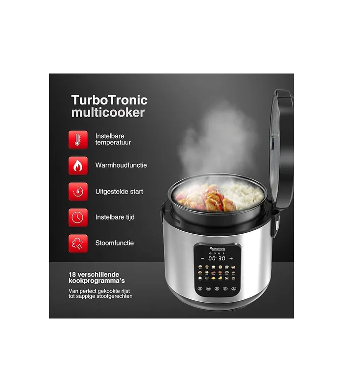 - 18-in-1 multifunctional tube – TurboTronic DMC18 for families (5-6 people) – saves up to 70% cooking time, 18 programs for rice to pizza, food friendly.