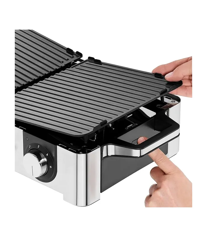 - Easy to clean as grill plates, grease collector and windshield are dishwasher safe. Due to a safety function, the grill only gets hot when the plates are built correctly